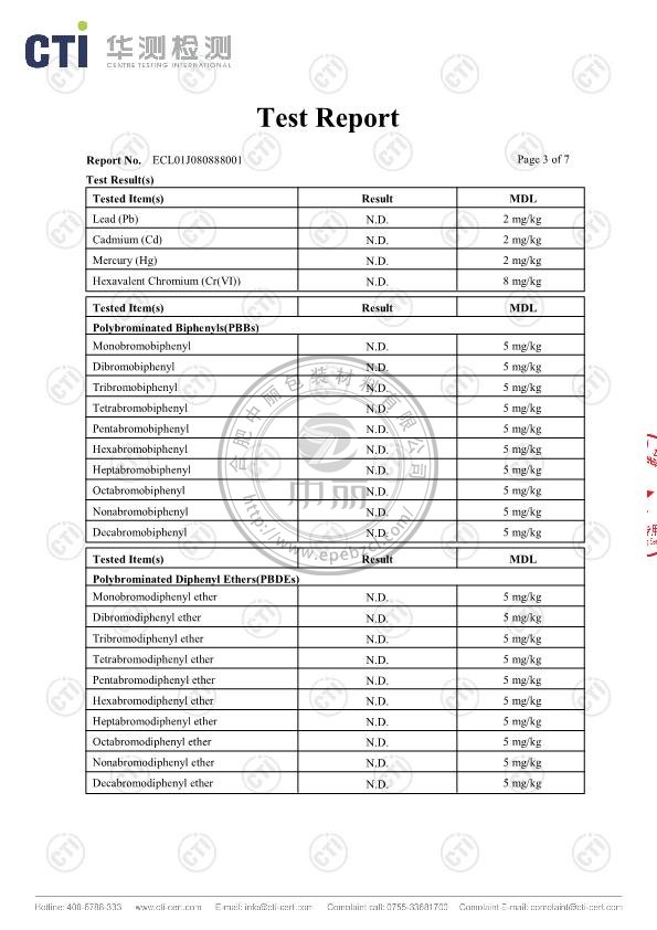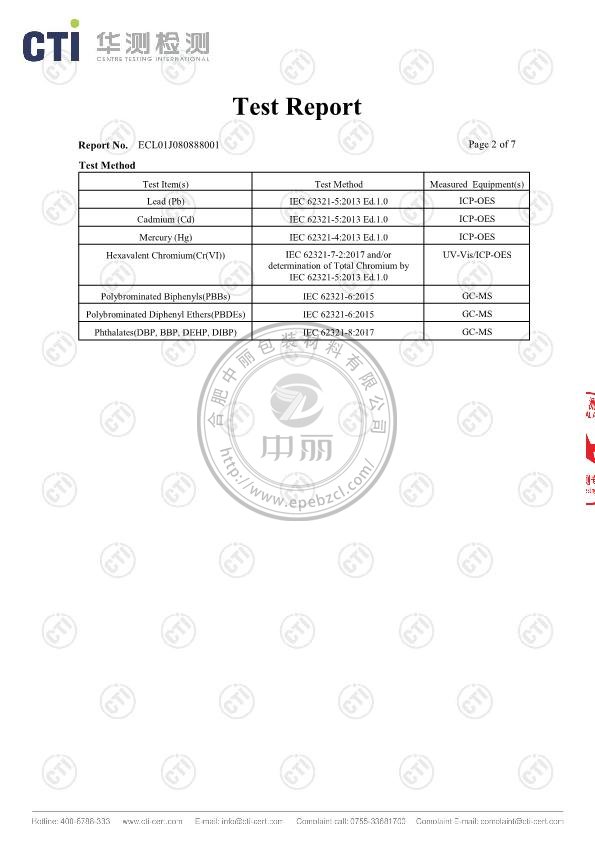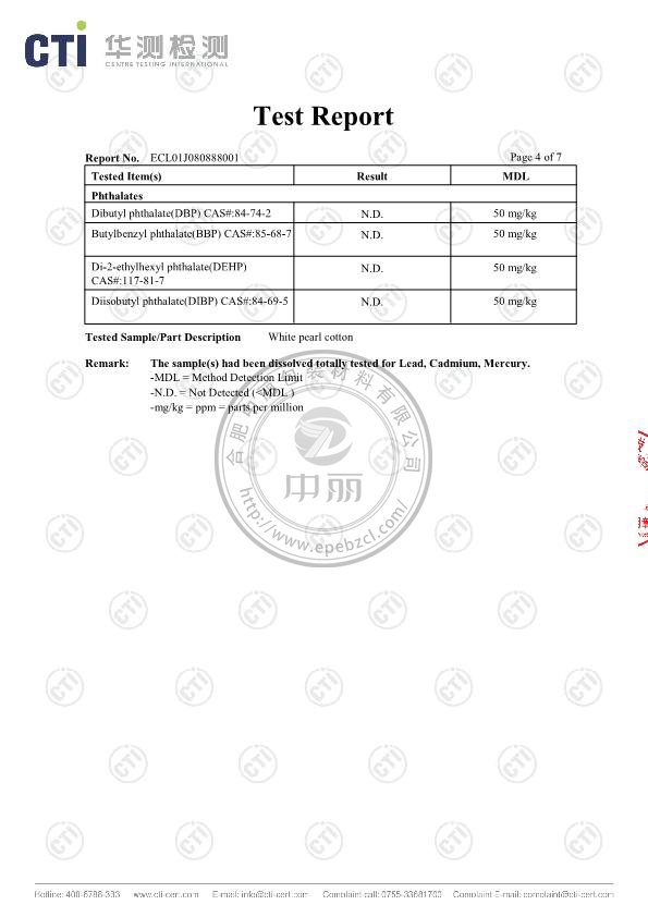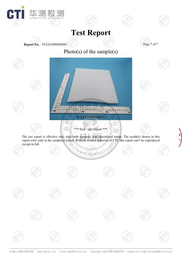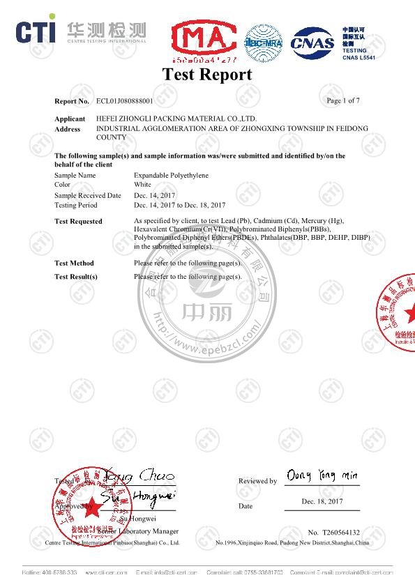 中麗珍珠棉英文檢測報告