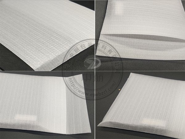 先選用優(yōu)質(zhì)的珍珠棉材料進(jìn)行覆膜處理,一般是覆合PE膜,再通過折邊機(jī)對(duì)覆膜后的珍珠棉材料進(jìn)行折邊處理,最后再使用制袋機(jī)制成珍珠棉袋